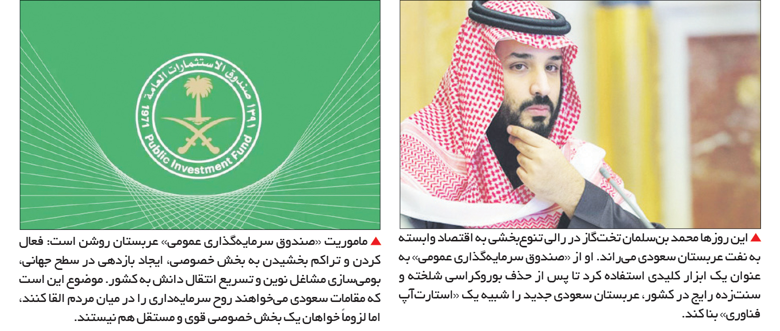 محمد بنسلمان که به گفته خودش به کارآفرینان حوزه فناوری مانند استیو جابز و مارک زاکربرگ به عنوان الگو نگاه میکرد و بارها گفته بود قصد دارد اندیشههای کارآفرینی آنان را در اقتصاد روبهرشد و تحولات پیشروی عربستان به کار بندد، از «صندوق سرمایهگذاری عمومی» به عنوان یک ابزار کلیدی استفاده کرد تا پس از حذف بوروکراسی شلخته و سنتزده رایج در کشور، عربستان سعودی جدید را شبیه یک «استارتآپ فناوری» بنا کند. زمانی که MBS با همکاری یاسر الرمیان، بانکدار سعودی سند «چشمانداز 2030» را برای بازنگری در اقتصاد عربستان و پایان دادنش به اتکای نفت ارائه کرد، PIF در خط مقدم این اقدامات اصلاحی قرار داشت. اجرای اصلاحات در بازار سرمایه، رفع موانع سرمایهگذاری خارجی و خصوصیسازی شرکتهای دولتی از مهمترین اقدامات اولیه بنسلمان در این صندوق بود. بر اساس چشمانداز 2030، داراییهای PIF تا آن سال به بیش از دو تریلیون دلار خواهد رسید تا آن را به بزرگترین صندوق سرمایهگذاری مستقل جهان تبدیل کند. ماموریت «صندوق سرمایهگذاری عمومی» روشن است: فعال کردن و تراکم بخشیدن به بخش خصوصی، ایجاد بازدهی در سطح جهانی، بومیسازی مشاغل نوین و تسریع انتقال دانش به کشور. اندرو لبر، پژوهشگر دانشگاه هاروارد که بر اقتصاد سیاسی در خاورمیانه تمرکز دارد، میگوید: «مقامات سعودی میخواهند روح سرمایهداری را در میان مردم القا کنند، اما لزوماً خواهان یک بخش خصوصی قوی و مستقل هم نیستند.» و این دقیقاً کارکرد PIF را نشان میدهد: کاری که دولت (صندوق سرمایهگذاری عمومی) انجام میدهد، نگاه به سرمایهگذاریهای خاصی است که آنقدر جدید یا بزرگ هستند که بخش خصوصی نمیتواند برای ورود به آنها ریسک کند: «اگر با PIF میتوانیم مستقیماً در شرکتهای خاصی سرمایهگذاری کنیم، چرا باید با عموزادههای وراج و شرکتهای خانوادگی منسوخشان چانه بزنیم؟»