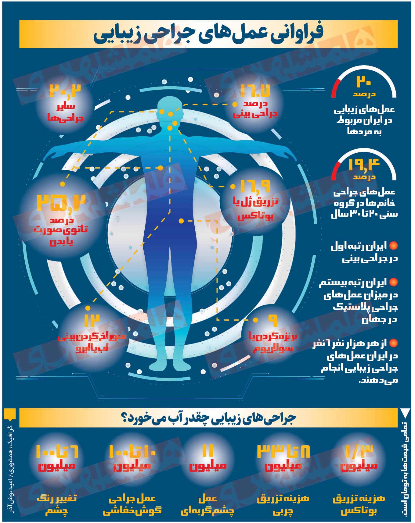 مثلا متوسط هر عمل چشمگربهای حدود 11میلیونو500هزارتومان است یا آنها که میخواهند گوشهای خفاشی داشته باشند، باید بین 10 تا 100میلیون تومان هزینه کنند. اخیرا هم که دلباختگان چشمهای رنگی حکایت خودشان را دارند و حاضرند 100میلیون تومان برای اینکه رنگ چشمانشان تغییر کند، از جیب مبارک هزینه کنند. البته همه این قیمتهایی که گفتیم در کلینیکهای زیبایی گرفته میشود و در بازار زیرزمینی این عملهای جراحی زیبایی با قیمتهای پایینتری انجام میشود اما تعداد قربانیانشان هم بهمراتب بیشتر است. بهگفته دبیر انجمن جراحان پلاستیک ایران، بیش از 1600صفحه در اینستاگرام انجام اعمال جراحی زیبایی را تبلیغ میکنند.