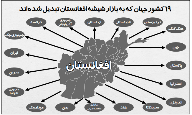 ایران : دی ۱۴۰۰ محموله 476 کیلویی شیشه که از افغانستان وارد کشور شده بود در شهرستان نیریز استان فارس کشف شد... مرداد پارسال ، حجیمترین محموله شیشه از مبدا افغانستان در گمرک شرق کشور کشف شد ؛ محمولهای به وزن هزار و 118 کیلو ( یک تن و 118 کیلو و 800 گرم ) که در یک تانکر سوخت و یک کامیون جاسازی شده بود و راننده هر دو خودرو، افغانی بودند و خودروها همزمان از افغانستان به ایران آمده بودند. این ششمین محموله حجیم شیشه در سال 1401 بود . پیش از آن ، محموله های شیشه به وزن 580 کیلو، 154 کیلو، 400 کیلو ، 61کیلو و 100 کیلو در گمرک شرق کشف شد که همگی از افغانستان به ایران رسیده بود ... آذر ۱۴۰۱ فرمانده انتظامی استان یزد از توقیف 730 کیلو شیشه جاسازی شده در یک کامیون ورودی از افغانستان خبر داد . این کامیون با گذر از استان گلستان به مقصد مرکز و غرب کشور در حرکت بود ... تیر امسال ۴۵۰ کیلو شیشه در استان تهران کشف شد . این محموله جاسازی شده در یک تریلی ، از افغانستان و به مقصد استان های غربی وارد کشور شده بود ...مرداد امسال ، برای اولین بار در سال جاری ، 500 لیتر مت آمفتامین مایع ( آبکار و آماده برای پخت و تبدیل به شیشه کریستالیزه ) در ایران کشف شد . این محموله ، در افغانستان داخل یک تریلی جاسازی شده بود که در استان هرمزگان ضبط شد .... شهریور امسال ۲۶۸ کیلو و ۲۰۰ گرم شیشه در شهرستان زاهدان کشف شد. مبدا این محموله ، افغانستان بود ... شهریور امسال 210 کیلو شیشه در استان گلستان کشف شد . این محموله از افغانستان وارد کشور شده بود ... هفته گذشته ، بیش از ۹۰ کیلوشیشه در گمرکات مرزی « دوغارون » و « ماهیرود » کشف شد. یکی از محموله ها به وزن 12 کیلو و 200 گرم ، در کوله پشتی دو زن افغانی ورودی به ایران و محموله دوم به وزن 78 کیلو و 750 گرم ، در مخازن کامیون یک راننده افغانی ورودی به ایران جاسازی شده بود ... با توجه به اینکه تنها بخشی از شیشه تولید شده در افغانستان ، وارد خاک ایران میشود تا بعد از تغذیه بازار داخلی ، به سایر کشورها برسد ، نکته مهم در کشفیات شیشه در ایران ، دفعات توقیف یکباره محمولههایی با اوزان بالا در کشور است که نشانه سازمانیافتگی اقدامات در مبداء ( افغانستان ) به منظور قاچاق گسترده به شکل تغذیه بازار ایران از طریق خرد کردن بخشی از محموله در مسیرهای فرعی داخل ایران و حمل بخش اعظم محموله از مسیر ایران به حوزه خلیج فارس ، آسیای میانه یا حوزه بالکان است .