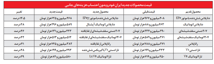 افزایش قیمت محصولات ایرانخودرو شامل کدام محصولات میشود؟