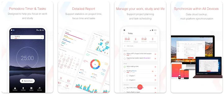 ویژگی های کلیدی Focus To-Do: Pomodoro & Tasks: