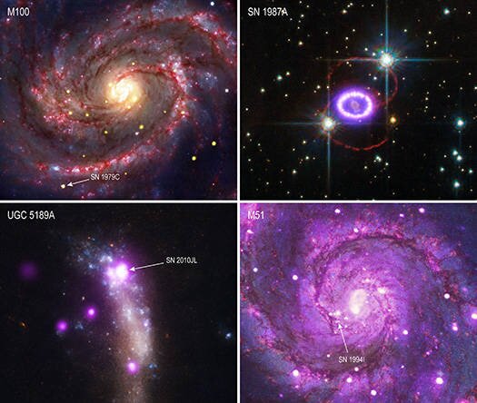 پژوهش جدیدی که این تهدید را گزارش داده، براساس مشاهدات پرتو ایکس منتشرشده از ۳۱ ابرنواختر و پیامدهای آنها انجام شده است که عمدتا توسط رصدخانه پرتو ایکس چاندرا، «رصدخانهٔ فضایی نیل گرلز سوئیفت»(Neil Gehrels Swift Observatory)، «آرایه تلسکوپ طیفسنجی هستهای» یا «نیوستار»(NuSTAR) و ماموریتهای «ایکسامام-نیوتون»(XMM-Newton) شکار شدهاند. این پژوهش نشان میدهد که سیارات میتوانند در معرض دوزهای کشندهای قرار بگیرند که در فاصله ۱۶۰ سال نوری قرار دارند. چهار ابرنواختر بررسیشده در این پژوهش، «SN ۱۹۷۹C»، «SN ۱۹۸۷A»، «SN ۲۰۱۰jl»، و «SN ۱۹۹۴I» نام دارند که در تصاویر ترکیبی حاوی دادههای چاندرا نشان داده شدهاند.