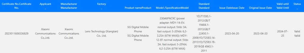یک تلفن هوشمند شیائومی با شماره مدل 23046PNC9C در ماه مارس توسط MIIT تایید شد. به نظر میرسد که این شماره مدل مربوط به گوشی سری Civi آینده این شرکت باشد. مشخص نیست که این گوشی Xiaomi Civi 3 نام خواهد داشت یا Xiaomi Civi 2s. با آنکه هنوز نام دقیق این دستگاه را نمیدانیم، اما گواهی 3C جزییات شارژر این تلفن هوشمند را فاش کرده است.
