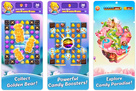 در بازی Candy Charming – 2022 Match 3 Puzzle Free Games شما به پادشاهی آب نبات های خوشمزه، رنگارنگ و زیبا می روید و در یک دنیای فانتزی می بایست پازل های زیادی را حل کنید. به ادعای سازنده بازی، بیشتر از 3000 مرحله مختلف در این بازی طراحی شده است و این تعداد مرحله به نوبه خود یک رکورد بسیار عالی به حساب می آید. این یعنی شما می توانید برای مدت های خیلی زیادی این بازی را روی دستگاه خود نصب کنید و حسابی سرگرم شوید بدون اینکه یک مرحله تکراری را مجدداً بازی کنید. مثل هر بازی جورچین 3 تایی دیگر، در بازی پازل های جذاب آب نباتی هم هدف اصلی شما حل پازل ها و جورچین هایی است که در آن شما می بایست یک ردیف 3 تایی یا بیشتر از آیتم های یک رنگ و مشابه بسازید تا آن آیتم ها از بین رفته و امتیاز مربوط به آن را دریافت کنید. از نظر گرافیکی، بازی Candy Charming – 2022 Match 3 Puzzle Free Games طراحی های فانتزی و خیلی خوبی دارد. ظاهر رنگارنگ، افکت های جالب، صداگذاری ها و موسیقی های شنیدنی و لذت بخش از جمله مزایای اصلی این بازی به شمار می روند.
