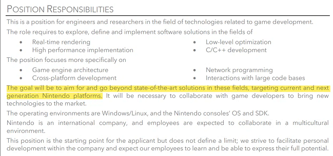 ما هنوز اطلاعات زیادی در مورد سخت افزار مربوطه یا زمان عرضه آن نداریم، اما این اولین بار است که نینتندو به طور رسمی وجود کنسول بعدی خود را تایید میکند. نینتندو سوییچ در مارس ۲۰۱۷ عرضه شد و صنعت بازی را دگرگون کرد. مسلما این کنسول با بازیهای انحصاری باکیفیت خود تا به امروز عمر کرده است. با این حال، فهرست شغلی جدیدی از سوی تیم تحقیق و توسعه اروپایی نینتندو (NERD) منتشر شده است که احتمالا عرضه قریب الوقوع کنسول بعدی این کمپانی اشاره دارد.
