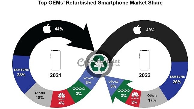 در سال 2022، فروش جهانی گوشیهای هوشمند تحت تأثیر افزایش قیمت قطعات و تورم در ابعاد جهانی قرار گرفت که در دهههای اخیر به ندرت ایجاد شده بود. از این رو، مصرفکنندگان گزینههای جذابی مانند گوشیهای ریفربیشد را پیش روی خود میدیدند که میتواند ارزش افزوده بیشتری در مقایسه با بسیاری از نسخههای عادی برای آنها داشته باشد..