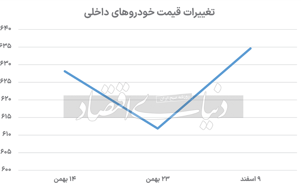 بررسی ها حاکی از آن است که روز گذشته قیمت خودروهای داخلی نسبت به قله قیمتی پیشین، یعنی ۱۴ بهمنماه، به طور میانگین ۶.۵میلیون تومان و ۰.۹درصد بیشتر بوده است. همچنین نسبت به آخرین کف قیمتی ثبتشده، یعنی ۲۳ بهمنماه، نیز به طور میانگین رشدی معادل ۲۰.۲میلیون تومان و ۳.۲درصد را نشان میدهد. خودروهای مونتاژی اما هنوز به قیمت ۱۴بهمن نرسیدهاند. میانگین قیمت خودروهای مونتاژی مورد بررسی روز گذشته ۴.۵میلیون تومان، معادل نیمدرصد، کمتر از بهای آنها در نیمه بهمن بوده است. اما نسبت به میانگین قیمتی ۲۳بهمن رشدی معادل ۱۵.۵میلیون تومان و ۱.۳درصد داشته است.