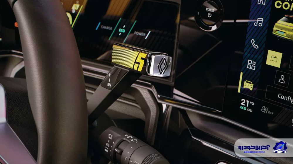 طراحی خاص اهرم انتخاب وضعیت حرکت دیگر ویژگی جالب کابین رنو ۵ جدید است. این اهرم که رنو آن را e-pop shifter می نامد، شباهت زیادی به قاب رژ لب دارد و مشتری می تواند آن را شخصی سازی کند. برای این اهرم لوازم جانبی اختصاصی طراحی شده و لبه آن همانند درگاه سیمکارت تلفن همراه با استفاده از یک شی نوک تیز قابل جداسازی است.