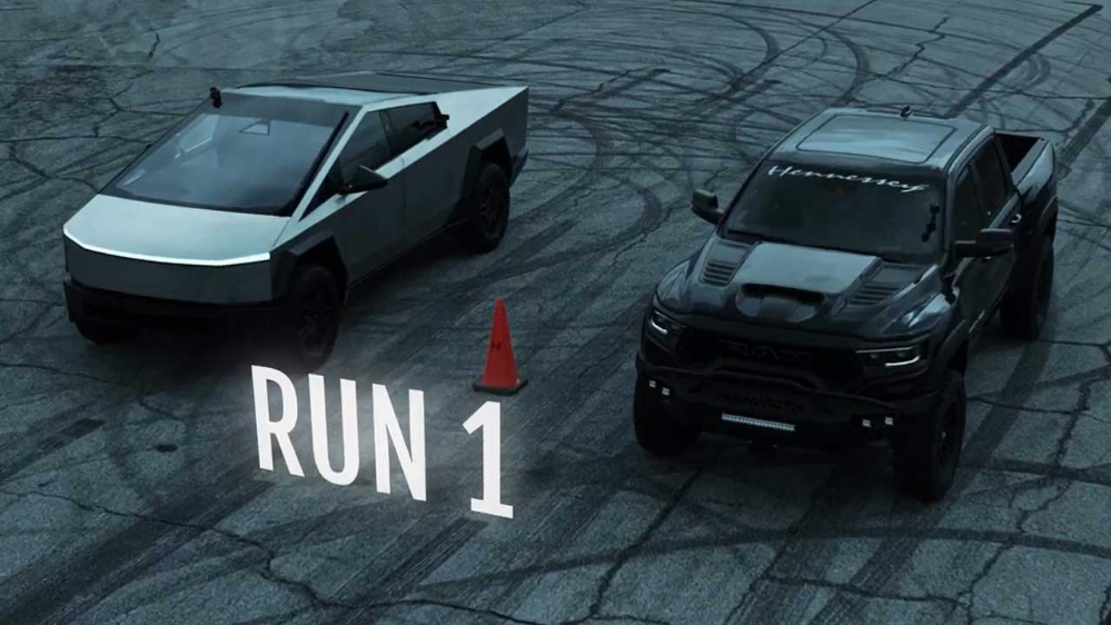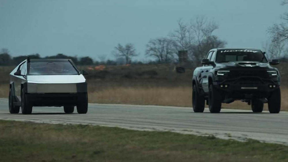 درگ جالب «تسلا سایبرتراک» با «رم TRX هنسی» 1000 اسبی