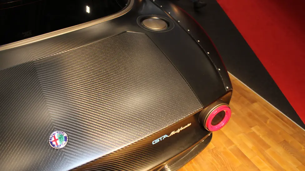 اگر از بخشها فنی بگذریم، بدنه GTA مودیفیکاتا جسورانه بازسازی شده است؛ طاق چرخهای بزرگ، نورپردازی بیشتر و میخپرچهای روی پنلهای بدنه که اشارهای از خودروی کلاسیک آلفارومئو به شمار میرود، چهرهای جذاب و اسپرت به آن بخشیده است. تمام شاسی با فیبرکربن توسعه پیدا کرده است تا درکنار سبکی بدنه و استحکام بیشتر اسکلت آن، بهعنوان یک ویژگی جذاب و گرانقیمت به نظر برسد. کربن بهکاررفته نهتنها در بدنه بلکه در کابین هم بههمراه چرم آلکانتارا خودنمایی میکند.