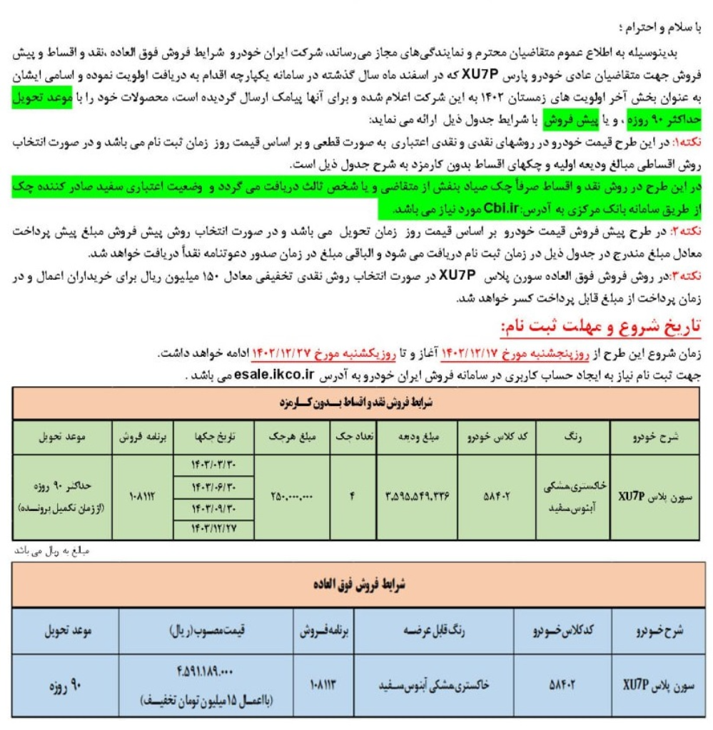 ایران جیب/ شرایط فروش فوق العاده، نقد و اقساط بدون کارمزد و پیش فروش محصولات ایران خودرو از طریق اولویت بندی سامانه یکپارچه (اسفند 1402) آغاز شد.