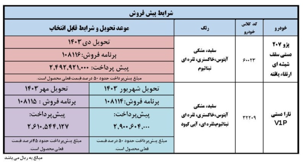 شرایط فروش و پیش فروش 3 محصول ایران خودرو