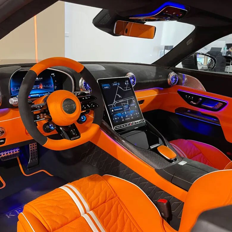 در ادامه تصاویری از پروژه اس ال63 آ ام گ که توسط کیوانی در قسمت بدنه شخصی سازی شده است را مشاهده می کنید. نصب کیت بدنه فیبرکربن در قسمت های مختلف جذابیت کار را افزایش داده و داخل کابین نیز با رنگ نارنجی محیطی متفاوت را پیش روی مخاطب قرار می دهد.