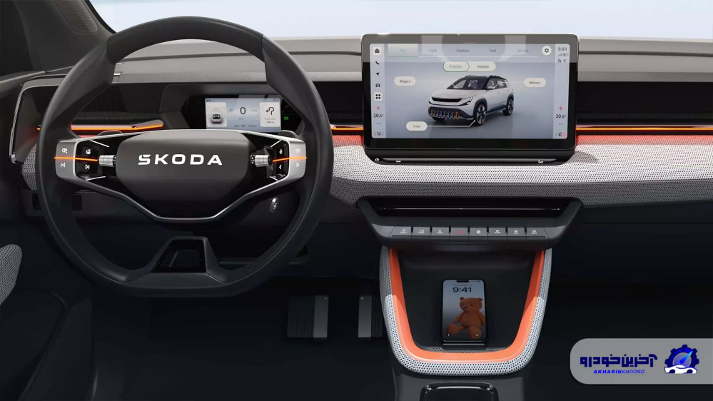 اشکودا اپیک در داخل کابین هم از طراحی زیبا و مدرنی برخوردار است. در این بخش نمایشگر بزرگ حاضر در قسمت میانی داشبورد بیش از هر چیز دیگر جلب توجه می کند. اشکودا درباره ابعاد این نمایشگر حرفی به میان نیاورده، اما به نظر می رسد با نمایشگری ۱۳ اینچی یا بزرگ تر طرف هستیم. طبق انتظار در پشت فرمان هم یک نمایشگر دیجیتال وظیفه ارائه اطلاعات مورد نیاز به راننده را بر عهده دارد. این نمایشگر در مقایسه با نمایشگر مربوط به سیستم سرگرمی بسیار کوچکتر است. رنگ نارنجی به داخل کابین نیز راه پیدا کرده و داشبورد، کنسول میانی و رودری ها با آن تزئین شده اند.