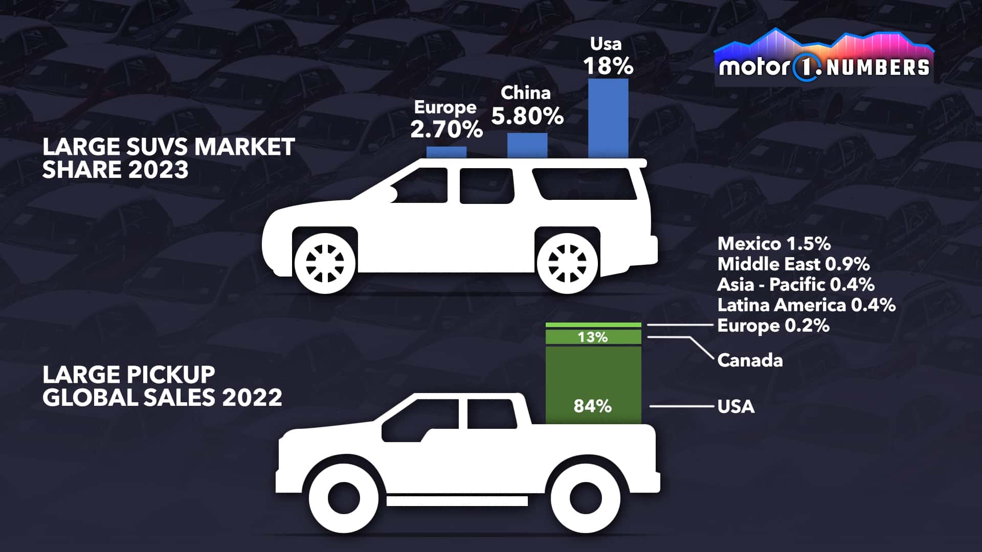 در سال ۲۰۲۳، حدود ۱۸ درصد کل شاسیبلندهای دنیا در امریکا تحویل خریداران شده است. عجیبتر اینکه، ۸۴ درصد وانتهای جهان، به مشتریان امریکایی فروخته میشوند. جمع این عدد با وانتسواران کانادایی، ۹۷ درصد بازار پیکاپ جهان را در اختیار امریکا و کانادا نشان میدهد.