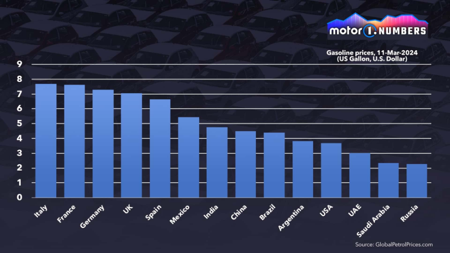 در میان کشورهای مهم از نظر بازار خودروی جهان، روسیه و عربستان و امارات، تنها مناطقی هستند که سوخت (بنزین یا گازوئیل) ارزانتر از امریکا دارند. در تمام کشورهای امریکای جنوبی و اروپا، به علاوهی هند و چین و استرالیا، فراوردهای نفتی مورد نیاز خودرو، گرانتر از امریکا است. استرالیا، ژاپن و کره جنوبی از معدود کشورهای صنعتی محسوب میشوند که بنزین لیتری ۱ تا ۱/۲ دلار را مشابه امریکا برای مردم فراهم میکنند. جهت اطلاع مخاطبان، ارزانترین بنزین جهان در ایران عرضه میشود و قیمت سوخت حتی در ونزوئلا بالاتر از ایران است.
