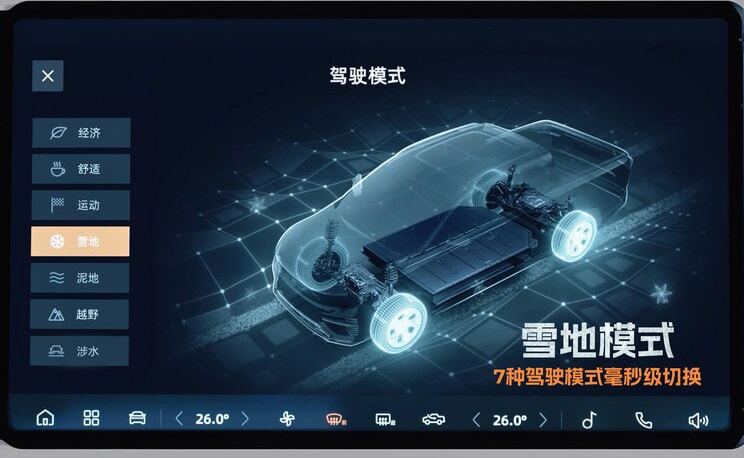 جیلی رادار هورایزن آر دی6 مجهز به 7 وضعیت رانندگی است که راننده با استفاده از فرمان صوتی می تواند وضعیت مورد نظر خود از جمله حالت آفرود را انتخاب کند.