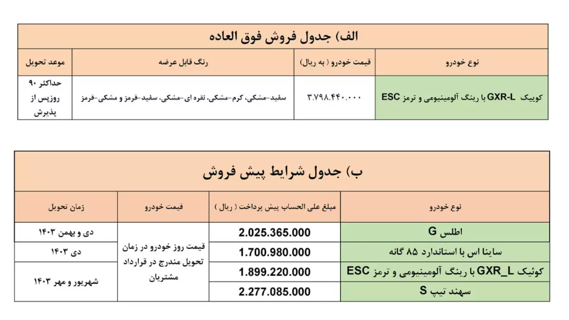 / گروه خودرو سازی سایپا شرایط فروش فوق العاده و پیش فروش چهار محصول خود را ویژه عید سعید فطر اعلام کرد.
