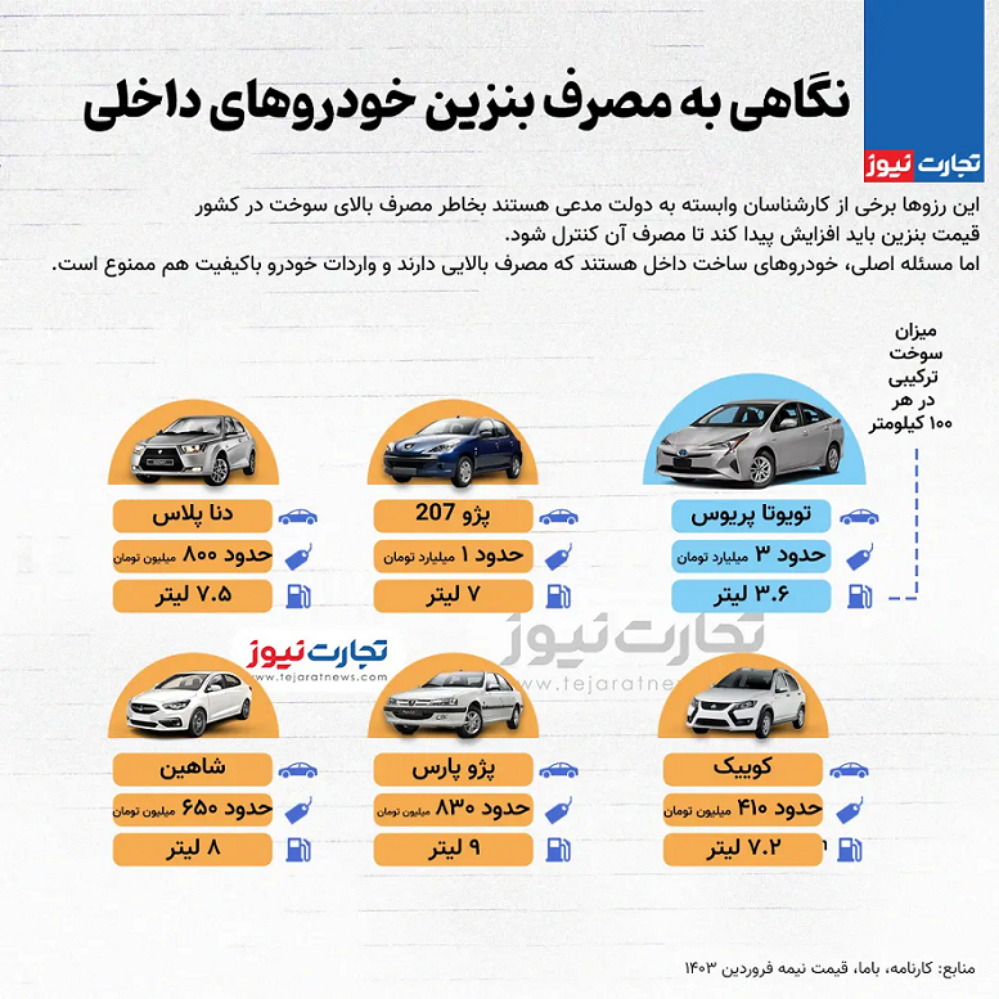 این رزوها برخی از کارشناسان وابسته به دولت مدعی هستند بخاطر مصرف بالای سوخت در کشور قیمت بنزین باید افزایش پیدا کند تا مصرف آن کنترل شود. اما مسئله اصلی، خودروهای ساخت داخل هستند که مصرف بالایی دارند و واردات خودروی باکیفیت هم ممنوع است.