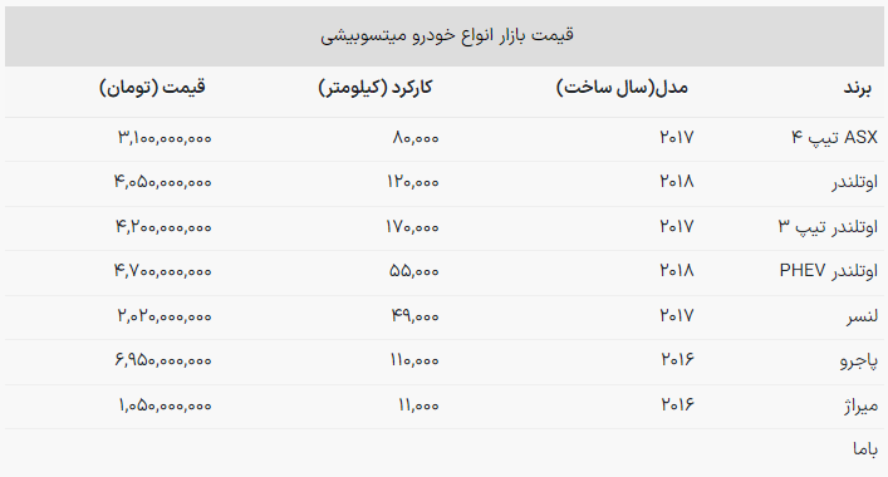 با مطالعه جدول زیر اطلاعات کاملی درباره قیمت روز خودروهای میتسوبیشی به دست خواهید آورد: