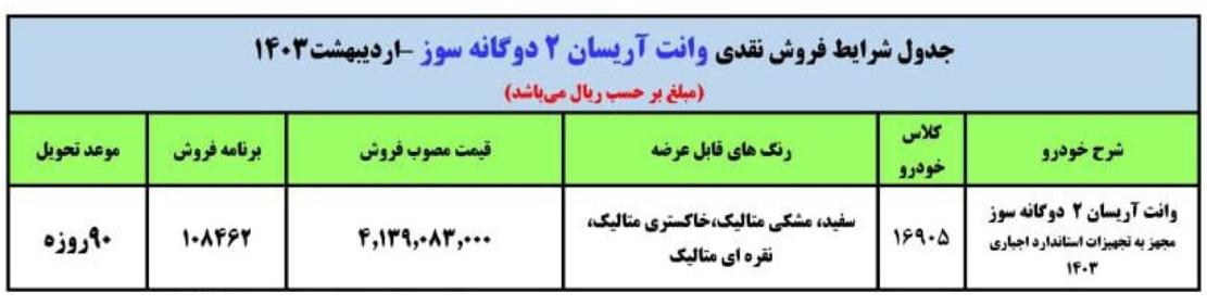 فروش فوری وانت آریسان ویژه اردیبهشت 1403