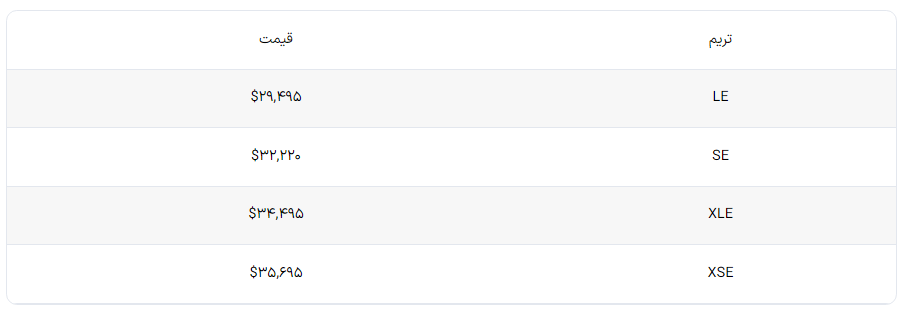 به گزارش ، کمری جدید به عنوان مدل ۲۰۲۵ به فروش می رسد. نسخه پایه این خودرو که با کد LE شناخته می شود، با پرداخت ۲۹,۴۹۵ دلار قابل خرید خواهد بود. این رقم معادل تقریباً ۲ میلیارد تومان است.