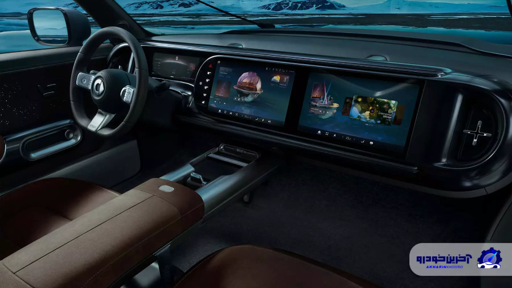 در داخل کابین، استفاده از سه نمایشگر بزرگ روی داشبورد اولین و مهم ترین چیزی است که باعث جلب توجه می شود. ابعاد این نمایشگر اعلام نشده، اما دو نمایشگر موجود در قسمت مرکزی و مقابل سرنشین کناری خیلی بزرگ تر از نمونه حاضر در پشت فرمان هستند. نکته جالب اینکه پنل به کار رفته در این نمایشگرها از نوع OLED است، از این رو کیفیت تصاویر و گرافیک نمایش داده شده روی آنها باید خیلی بالا باشد.