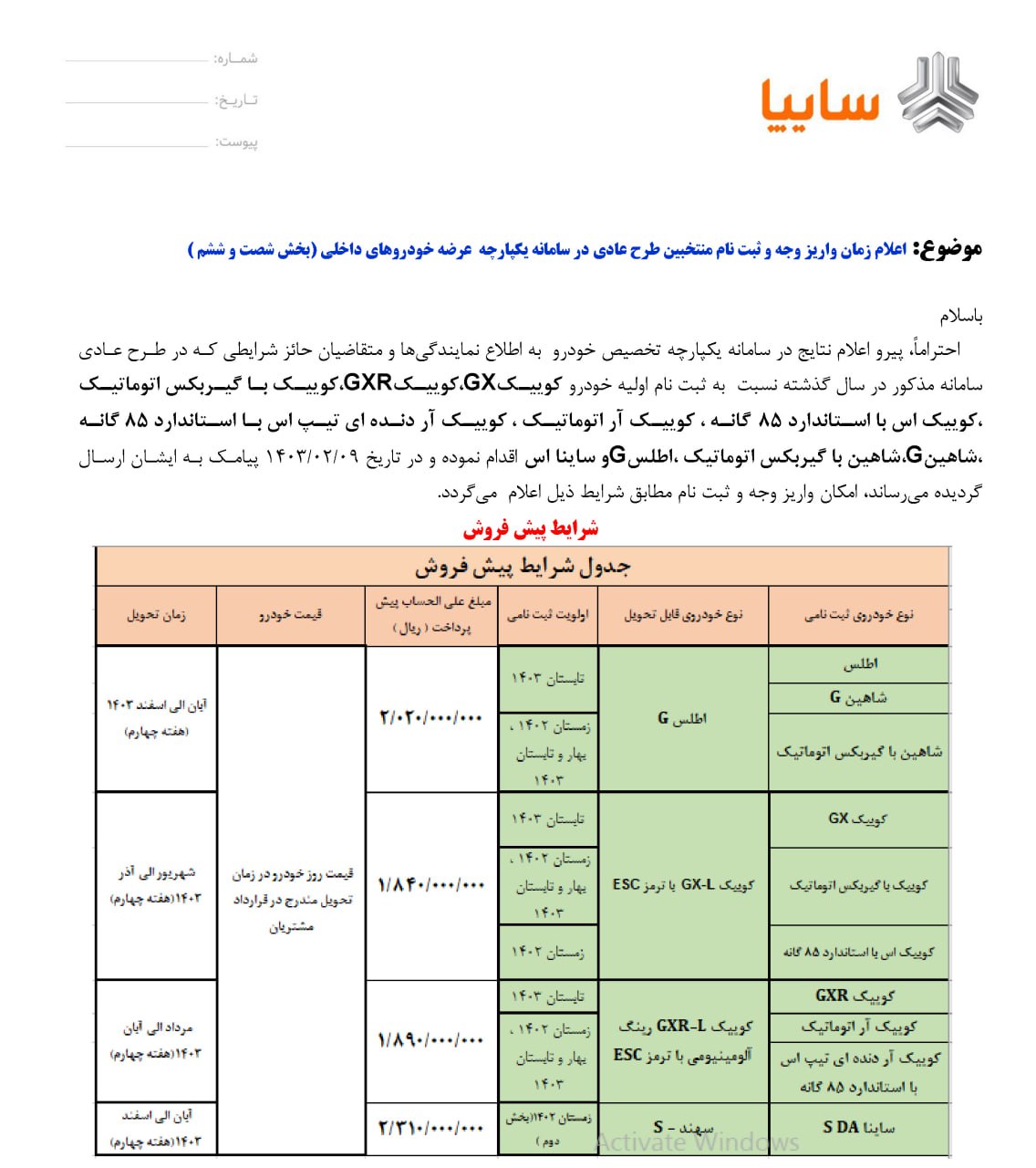 فراخوان واریز وجه و ثبت نام محصولات سایپا اعلام شد