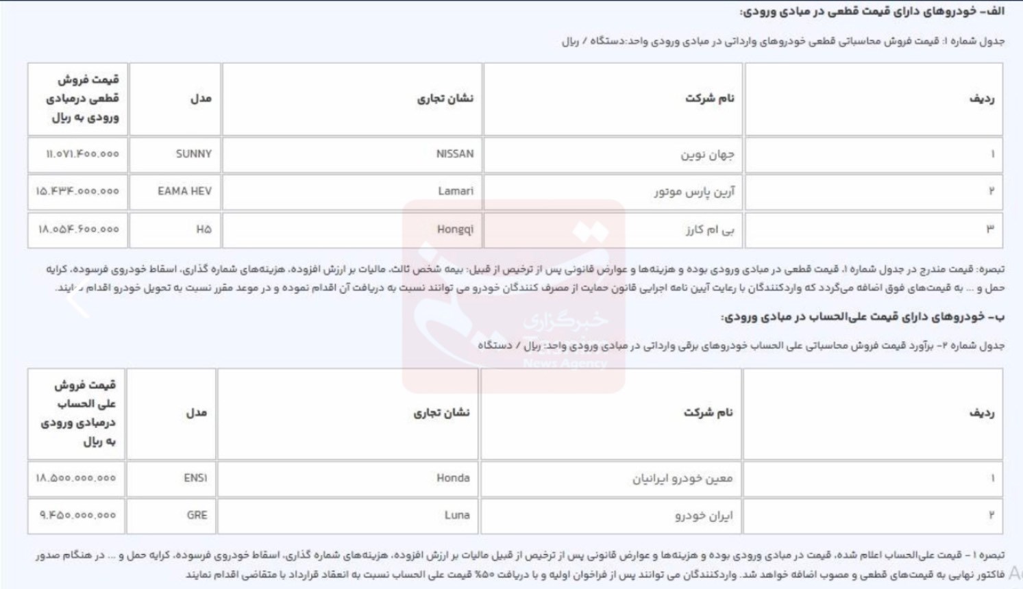 تبصره 2 - قیمت قطعی خودروهای مذکور پس از ارایه کلیه مستندات و مدارک مثبته و براساس آخرین ضوابط و مقررات تعیین و متعاقباً در سامانه بارگذاری خواهد شد.