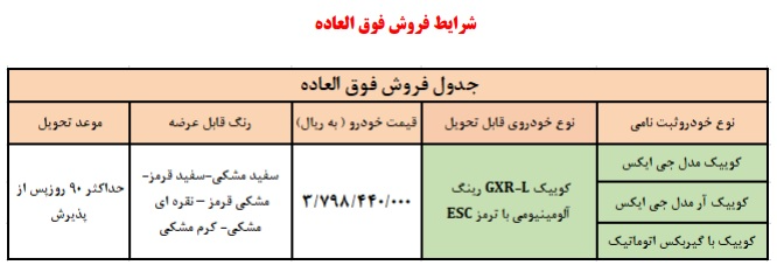 ایران جیب/ پیرو اعلام نتایج در سامانه یکپارچه تخصیص خودرو به اطلاع نمایندگی ها و متقاضیان حائز شرایطی که در طرح عادی سامانه مذکور در سال گذشته نسبت به ثبت نام اولیه خودرو ساینا اس با استاندارد 85 گانه ،شاهین G، شاهین با گیربکس اتوماتیک، کوییک GX و کوییک GXR، کوییک با گیربکس اتوماتیک، ساینا اس گیربکس اتوماتیک ، ساینا مدل جی ایکس اتوماتیک ، ساینا اس دوگانه سوز ، ساینا جی ایکس ، ساینا مدل جی ایکس دوگانه سوز ، اقدام نموده در تاریخ 1403/02/17 پیامک به ایشان ارسال گردیده می رساند، امکان واریز وجه خودرو و ثبت نام مطابق شرایط ذیل اعلام می گردد.