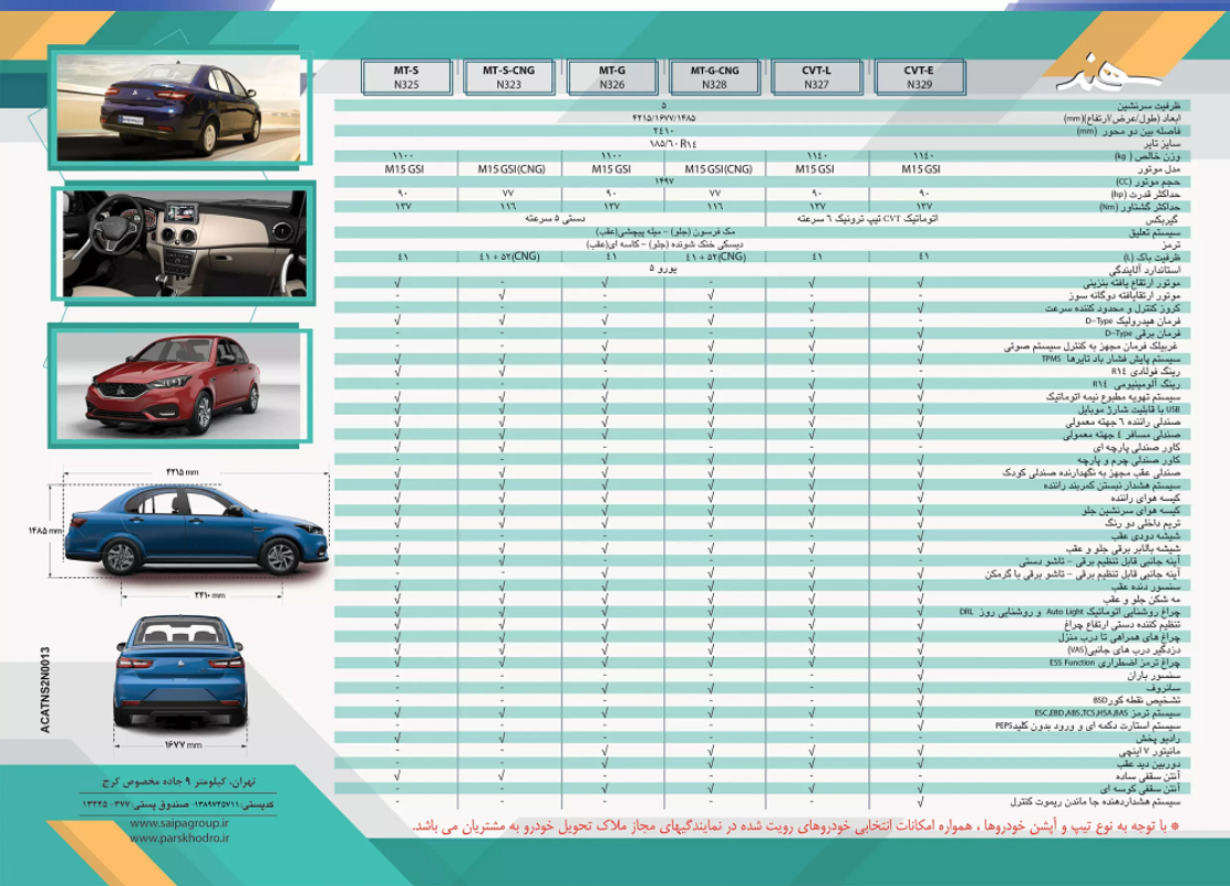 / با به روزرسانی کاتالوگ رسمی پارس خودرو، مشخصات رسمی سهند دوگانه سوز اعلام گردید و این خودرو به زودی به بازار می آید.