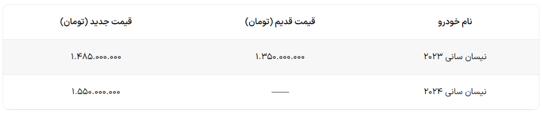 قیمت جدید «نیسان سانی» اعلام شد