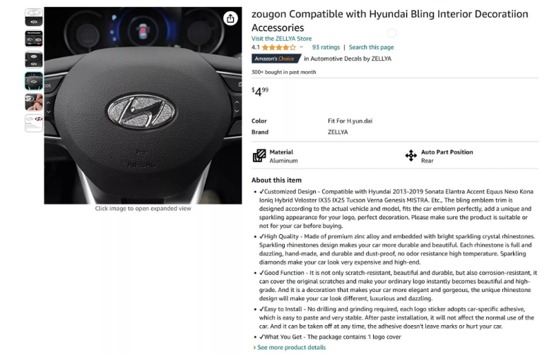 مدیریت ایمنی ترافیک بزرگراههای ملی آمریکا، NHTSA، نخستینبار در نوامبر سال ۲۰۲۳ و پس از آنکه یک راننده بهخاطر استفاده از تزئینات فرمان، بینایی خود را از دست داد، خاطرنشان کرد که استفاده از این قطعات پلاستیکی و فلزی روی فرمان خودرو میتواند در لحظه تصادف به چهره شخص آسیب جدی وارد کند.