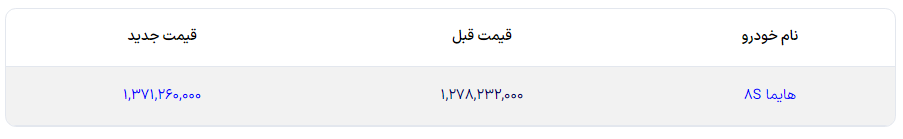 اعلام قیمت جدید هایما ۸S برای خرداد ۱۴۰۳