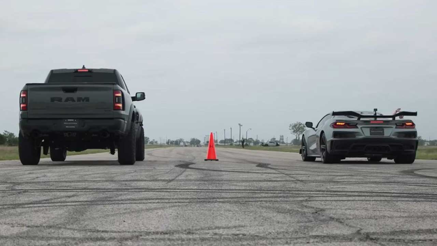 پدال/ هنسی در این ویدئو نشان میدهد که یک پیکاپ در پیست چه کاری میتواند انجام دهد. این سریعترین رم TRX جهان است که به مصاف کوروت Z06 میرود.