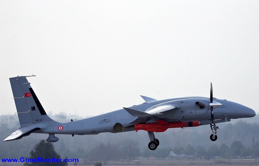 از محموله های تسلیحاتی قابل حمل توسط پهپاد می توان به موشک جیریت، مهمات هوشمند بوزوک، مام-ال (ترموباریک)، مام-سی (با قابلیت انفجار قوی)، موشک ضد تانک دور برد، بمب های هدایت شونده ام کی-81، ام کی-82، ام کی-83 (JDAM) اشاره کرد. آکینجی همچنین می تواند به موشک های هوا به هوای گوکدوگان و بوزدوغان، بمب هدایت شونده ام کی-82 دارای بال، و موشک SOM-A مسلح شود.