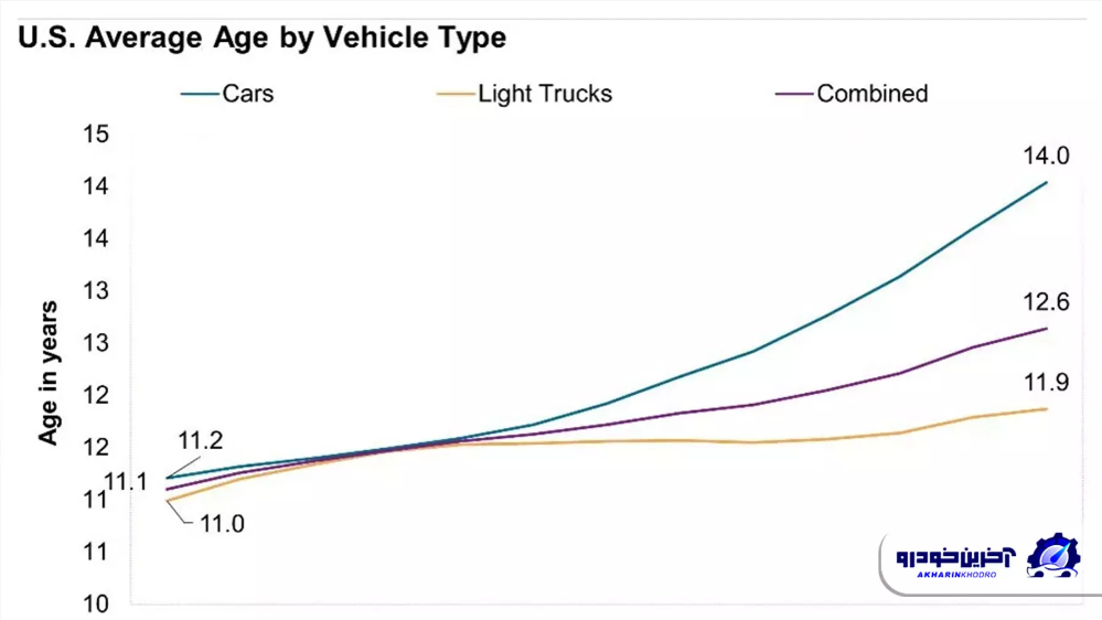 بر اساس داده های آماری اکنون ۲۸۶ میلیون خودرو در داخل مرزهای آمریکا تردد می کنند. این رقم نزدیک به ۲ میلیون دستگاه نسبت به دوره قبل افزایش یافته است. طبق پیش بینی های موسسه S&P Global Mobility به دلیل افزایش شمار خودروهایی که بین ۶ تا ۱۴ سال عمر دارند، رقم میانگین عمر کل خودروها باز هم بیشتر خواهد شد.