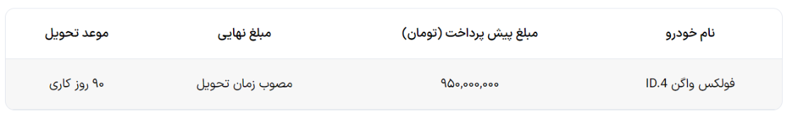جدول شرایط فروش فولکس واگن ID.4 خرداد