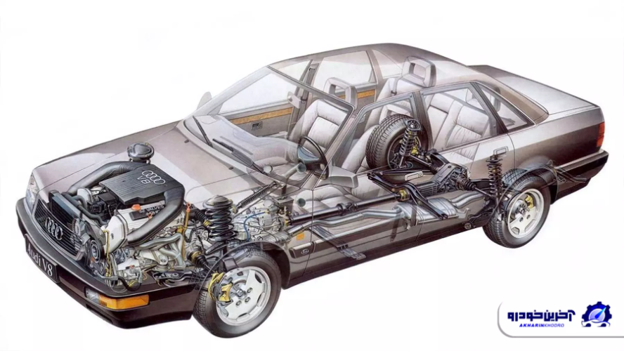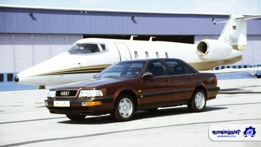 / خودرو آئودی V8 که در اواخر دهه ۱۹۸۰ عرضه شد، جد آئودی A8 مدرن امروزی است.
