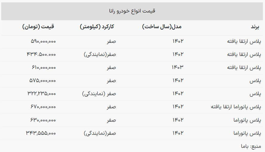 قیمت رانا صفر امروز