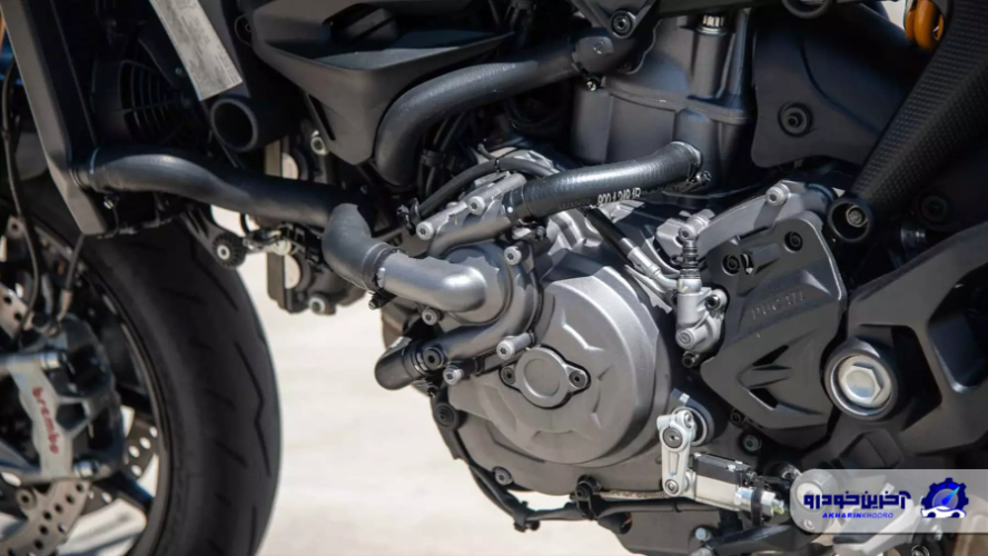 موتور ۹۳۷ سی سی با صدایی بم و رسا روشن میشود که با وجود لولههای اگزوز Termignoni، بیش از حد بلند و آزاردهنده به گوش نمیرسد. به لطف همپوشانی ۱۱ درجهای زمانبندی سوپاپ Testastretta، انجین L-Twin روانتر از همیشه کار میکند و گشتاوری یکنواخت تولید میکند که به طور محسوس در محدوده ۹۲۵۰ دور در دقیقه بسیار پرقدرت احساس میشود. این در حالی است که در دورههای گذشته، عملکرد انجین های مانستر تجربهای دراماتیکتر را رقم میزد؛ چراکه با لرزش قابل توجه در دور پایین و دورهای بیش از ۱۰هزار همراه بود.