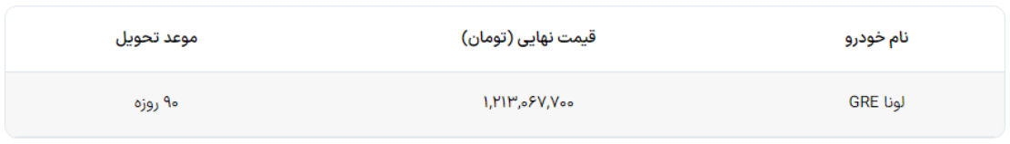شرکت ایران خودرو بخشنامه جدید فروش مخصوص متقاضیان خودروی برقی را منتشر کرده است. بر اساس این بخشنامه، متقاضیانی که در سامانه عرضه خودروهای برقی خودروی لونا GRE را ثبت نام کرده اند می توانند برای تکمیل وجه اقدام نمایند. قیمت این خودرو ۱ میلیارد و ۲۱۳ میلیون تومان در نظر گرفته شده است و این سدان برقی تنها در رنگ سفید عرضه می شود. فرآیند واریز وجه تنها به مدت ۵ روز از تاریخ صدور بخشنامه فعال خواهد بود و پس از آن شرکت مسئولیتی در قبال ثبت قرارداد نخواهد داشت.