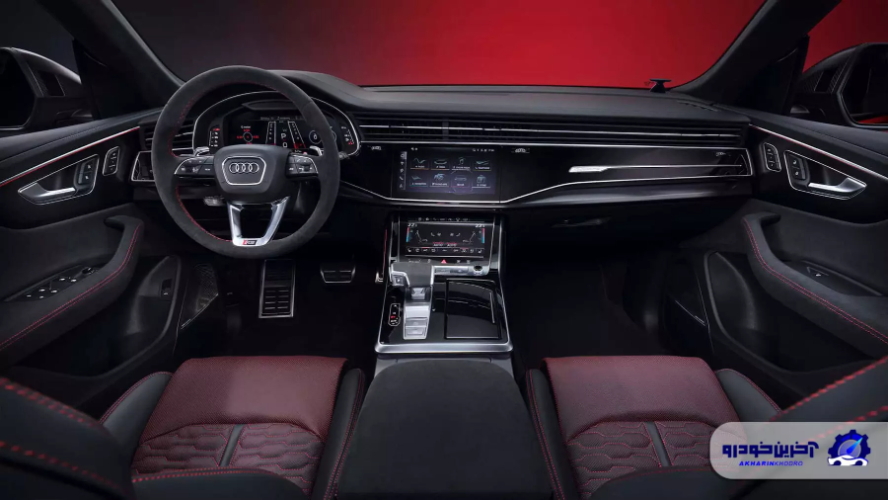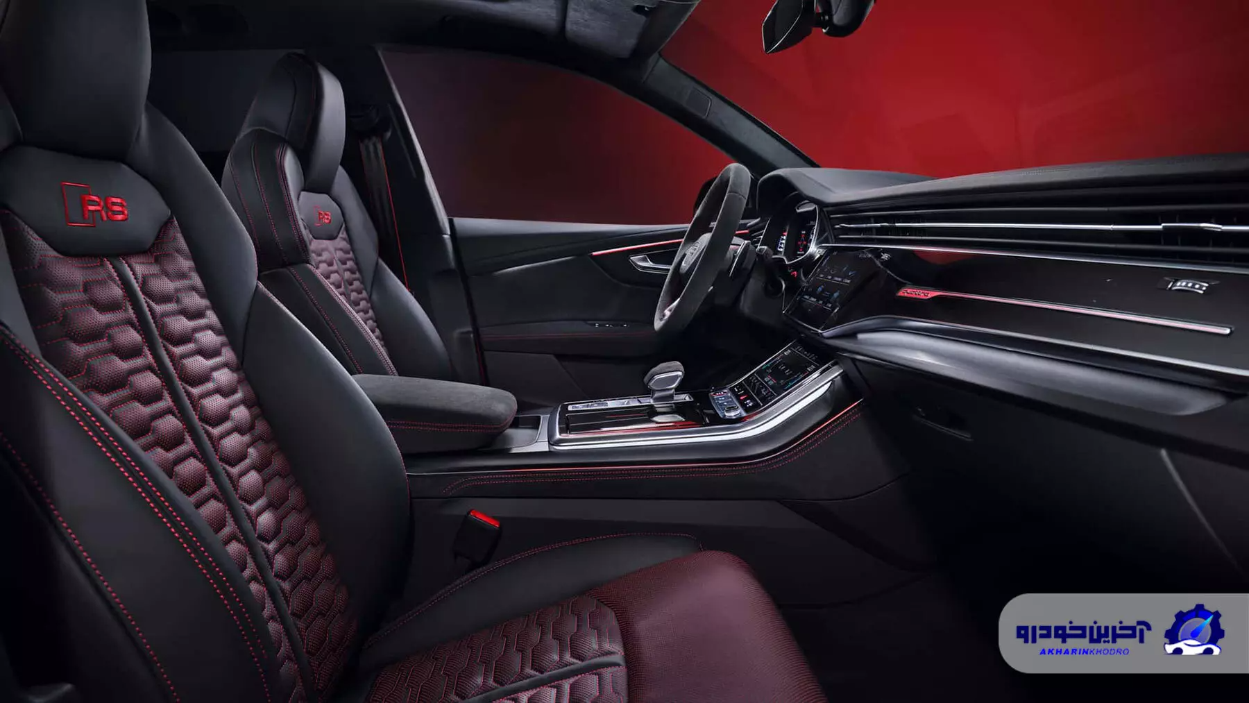 در داخل کابین، صندلیهای اسپرت و فرمان با روکش آلکانترا از ویژگیهای جذاب فیس لیفت RS Q8 هستند. آئودی برای کمک به حفظ محیط زیست، از مواد بازیافتی در قسمتهای مختلف کابین استفاده کرده است.