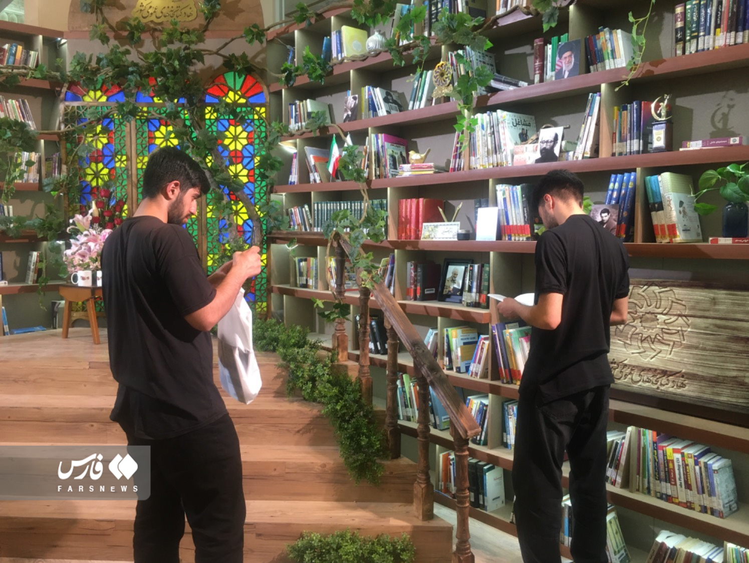 یکی از این غرفهها متعلق به نهاد کتابخانههای عمومی کشور است که دکوری شبیه کتابخانه در غرفه خود برپا کرده است. این دکور در ماه محرم امسال هم در هیأت الرضا(ع) محفل بسیجیان و رهروان شهدا با مداحی رضا هلالی برپا شده بود.