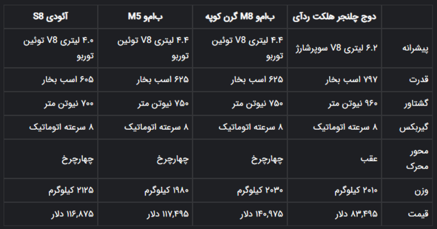 پدال/ دوج چلنجر هلکت ردآی که با ۷۹۷ اسب بخار قدرت قویترین ماسل کار آمریکایی محسوب میشود، به مصاف سه خودروی اسپرت آلمانی رفته است.