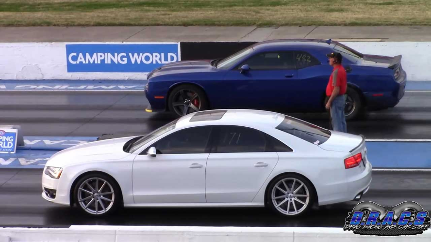 پسازاین، یک بامو دیگر به میدان میآید تا شاید بتواند باخت قبلی را جبران کند و قلدر آمریکایی را سر جایش بنشاند. این ماشین M5 است که از همان قوای محرکهٔ M8 استفاده میکند اما کمی سبکتر است. بااینحال، برخلاف دیگر درگهایی که از چلنجر دیده بودیم، ردآی مثل قطار روی ریل به جلو پرتاب میشود و دومین پیروزی را با یک تایم ۱۱ ثانیهای دیگر به دست میآورد درحالیکه بامو بازهم نمیتواند تایمی بهتر از ۱۱.۲ ثانیه ثبت کند. در آخر هم یک آئودی S8 نسل قبلی با ۶۰۵ اسب بخار قدرت در برابر دوج قرار میگیرد و هرچند چلنجر این بار با تایم ۱۱.۱۱ ثانیه عملکرد ضعیفتری دارد اما آئودی دقیقاً تایمی مشابه M5 ثبت میکند و مغلوب میشود.