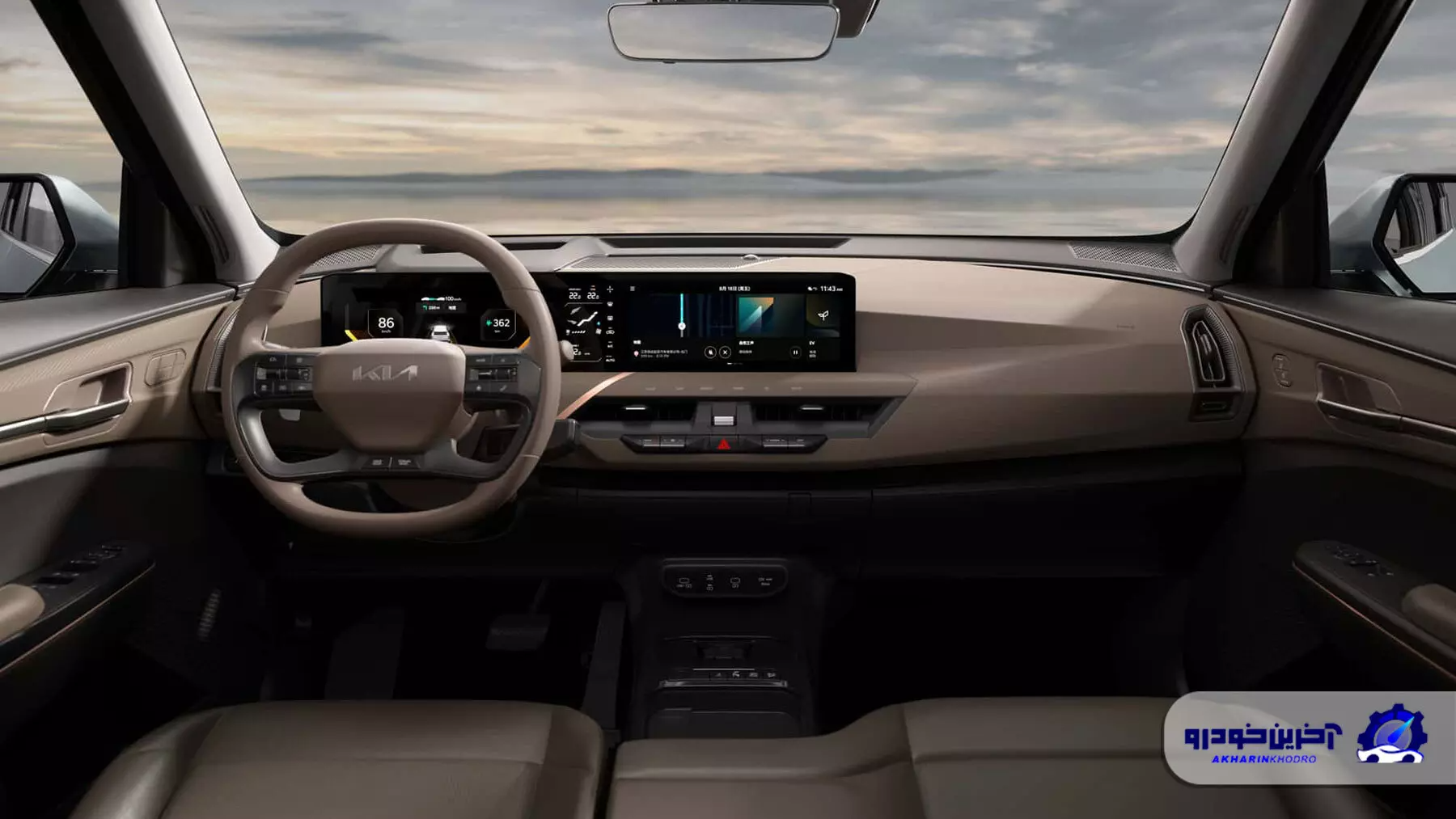 طراحی کابین به سبک خودروهای برقی جدید کمپانی کیا، طراحی مینیمال را می بینیم. المان های طراحی در این خودرو در عین سادگی بسیار مدرن هستند و می تواند راننده و سرنشینان را راضی کند. دو صفحه نمایش مالتی مدیا و کلاستر به صورت یکپارچه طراحی شده اند و زیر صفحه نمایش مالتی مدیا کلید های لمسی مربوط به کنترل آپشن ها را می بینیم. در شاسی بلند برقی کره ای بازار امکانات خوبی نظیر سنسور نور، آینه های تاشو برقی، سنسور پارک جلو و عقب، رینگ های ۱۸ اینچی، فناوری LED چراغ ها، سانروف، سیستم کنترل پایداری، سامانه کنترل حرکت در سربالایی و سرپایینی، ۶ کیسه هوای ده نقطه ای، سیستم پایش فشار باد تایرها، کروز کنترل ، دوربین دنده عقب، ورود بدون کلید، استارت از روی ریموت و… دیده می شود.
