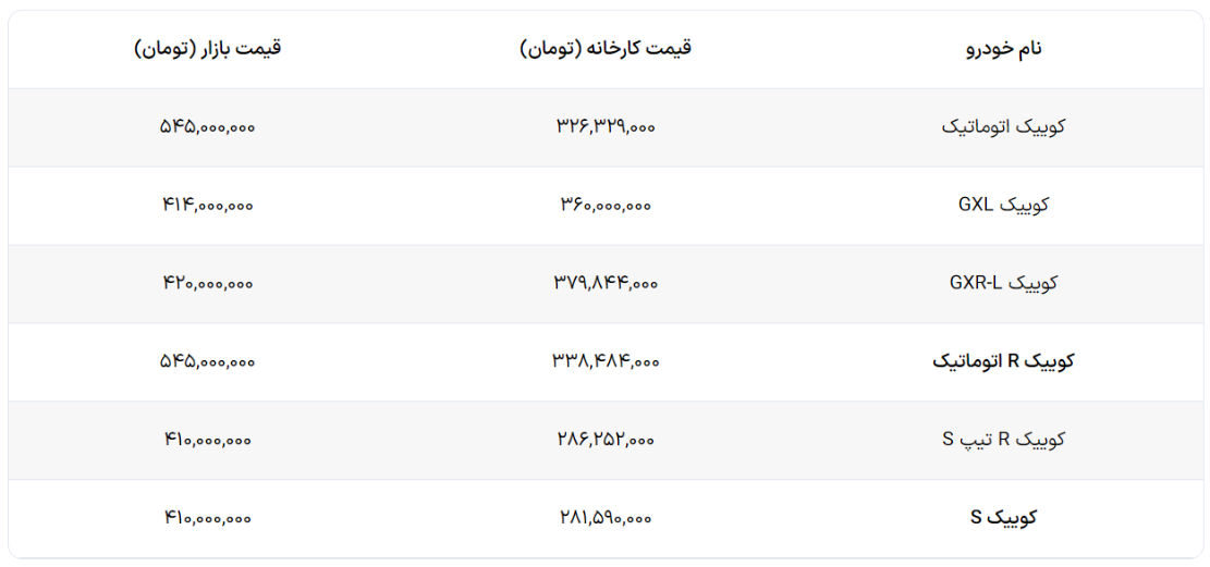 خودروهای صفر کیلومتر در بازه ۳۰۰ تا ۶۰۰ میلیون تومان