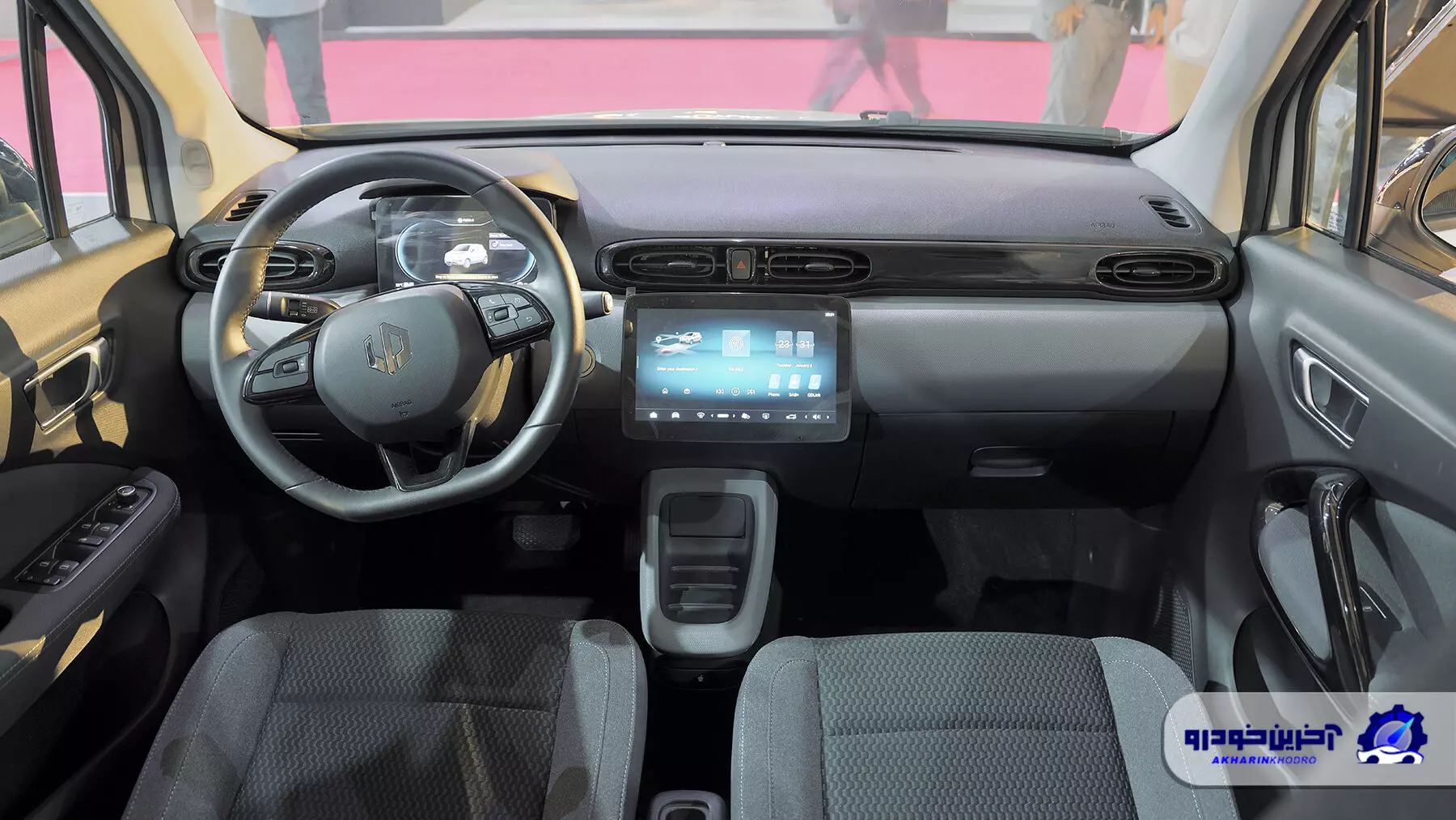 داخل کابین طراحی مینیمال، ساده و بسیار اقتصادی را می بینیم. متریال از پلاستیک خشک است اما کیفیت راضی کننده به نظر می رسد. یک صفحه نمایش کوچک جلوآمپر دیجیتال را نمایش می دهد و صفحه نمایش دیگری در وسط سیستم مالتی مدیا را در دسترس قرار می دهد. با وجود اینکه با یک اقتصادی کوچک طرف هستیم اما امکانات به نسبت کاملی را در این خودرو می بینیم. در هاچبک برقی پارس خودرو امکانات ایمنی و رفاهی نظیر فرمان کمکی برقی، کروز کنترل، کنترلر های سیستم صوتی روی فرمان، سیستم پایش فشار باد تایر ها (TPMS)، ۲ کیسه هوا، آینه های جانبی برقی مجهز به گرم کن، سانروف پانورامیک، استارت دکمه ای، دوربین دنده عقب، سنسنور پارک عقب و جلو، ترمز پارک برقی، اتوهلد، سیستم کنترل حرکت در سربالایی، سیستم کنترل پایداری و… دیده می شود.