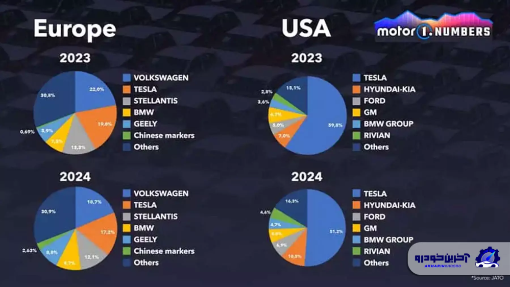 اگر بخواهیم بیشتر وارد جزئیات شویم، باید بگوییم سهم تسلا از بازار خودروهای الکتریکی اروپا از ۱۹.۸ درصد به ۱۷.۲ کاهش یافته است. البته باید به این نکته هم اشاره کنیم که گروه فولکس واگن بیشتر از تسلا مشتریان خود را از دست داده؛ دادههای موجود حکایت از آن دارند که سهم این خودروساز چند ملیتی از ۲۲ به ۱۸.۷ درصد افت کرده است.
